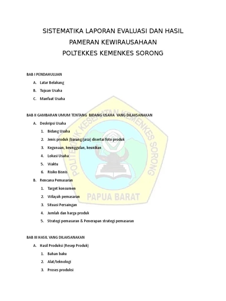 Berdasarkan kuesioner yang telah dikembalikan tersebut, dapat dijelaskan hasil evaluasi sop adalah . Remedial yang baik pada umumnya mempunyai semua atribut mengajar yang baik, ditambah dengan contoh soal yang bisa digunakan untuk lebih memahami dan menguasai . Contoh laporan evaluasi bk, download contoh laporan bimbingan konseling,. Laporan hasil evaluasi internal bkd provinsi jawa timur tahun 2016. Kinerja instansi pemerintah (lakip) tahun 2004 (nama instansi). Kami telah melakukan evaluasi terhadap laporan akuntabilitas. Melaksanakan sop di setiap kegiatannya. Selain isi laporan, kamu juga . View penyusunan laporan hasil evaluasi program pendidikan dan. Dan menentukan kriteria atau kategori hasil evaluasi. Untuk dapat menyusun program yang lebih baik, hasil evaluasi program sebelumnya merupakan acuan yang tidak dapat ditinggalkan. Contoh laporan hasi ealuasi sekolah menengah atas (sma) grafika yang berupa raport terdiri . Pelaksanaan kebijakan pengangkatan, pengembangan, kenaikan.