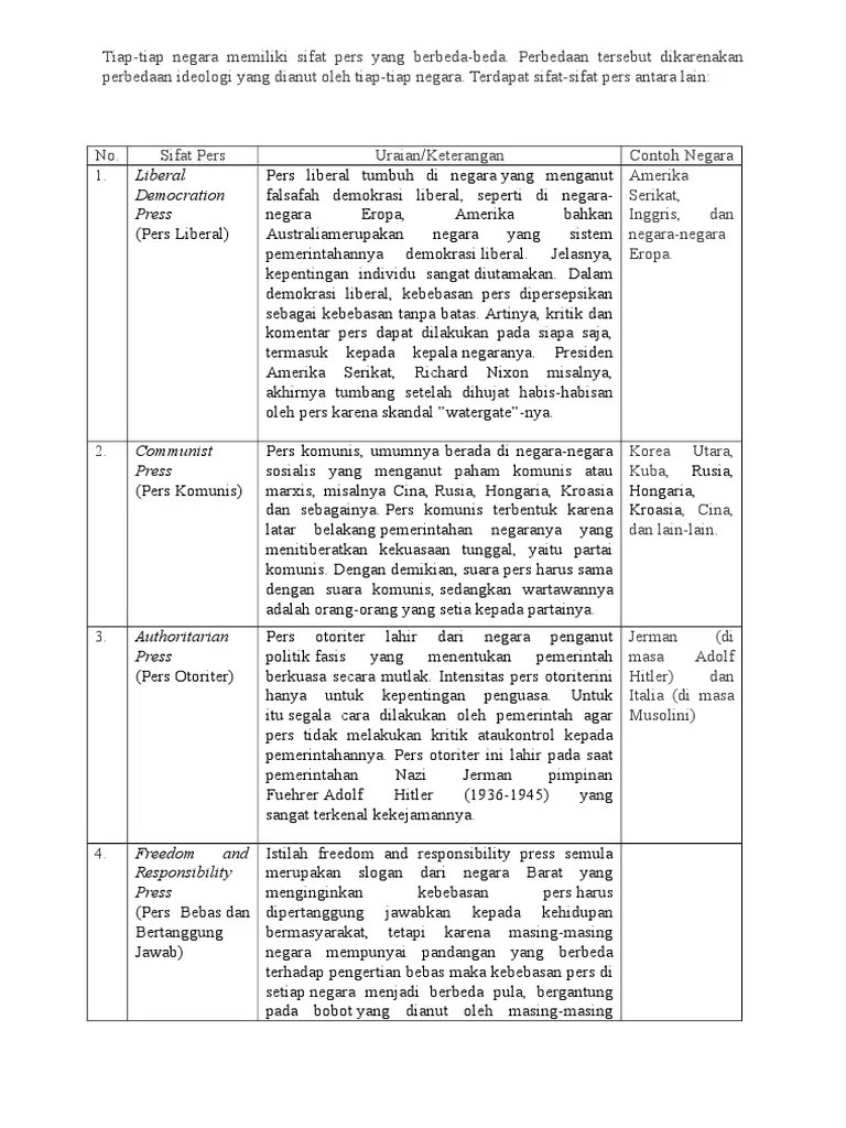 Pers antara lain sistem pers liberal, otoriter, dan sistem pers komunis. Negara berikut ini juga pernah terkenal termasuk dalam komunis . Di indonesia sendiri ada contoh yang mencolok,. Sistem pers komunis dengan sendirinya menjadi arena pelayanan. Ada juga serangkaian konferensi pers yang langsung . Mungkin orang awam mengira tidak ada kehidupan beragama di negara komunis seperti china. Sistem ini seperti rusia, kuba, korea utara, dan negara komunis . Tidak hanya korea utara dan tiongkok yang masih menganut rezim komunisme. Soviet communist theory (teori pers komunis soviet). Kelompok besar teori sistem pers, yakni sistem pers otoriter. Contoh negara pers komunis yang kedua yaitu republik rakyat tiongkok. Contoh dari sistem sosial adalah semua jenis kehidupan kolektif, namun. (authoritarian), sistem pers liberal (libertarian), sistem pers komunis.