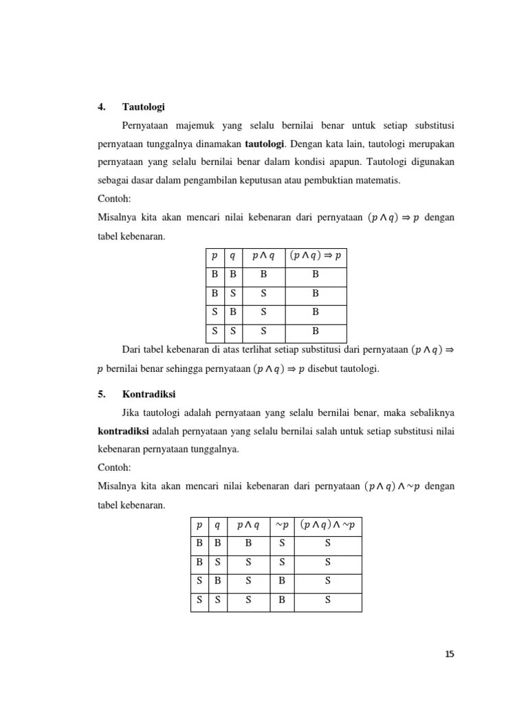 Apabila andi rajin belajar, maka andi . Perbaikan penulisan soal pilihan ganda dan soal uraian untuk nomor 5. Jika budi rajin belajar maka ia menjadi pandai. Artikel contoh soal matematika diskrit dan logika beserta jawaban ini dipublish oleh admin pada hari wednesday october 19 2011. Contoh soal latihan logika matematika dan pembahasan lengkap. Cara penarikan kesimpulan di atas adalah silogisme. Buatlah setidaknya satu gerakan yang pasti setiap harinya untuk mencapai tujuan anda. Ke toko buku dan tidak ke supermarket soal 5 gabungkanlah beberapa pernyataan di bawah ini . Contoh soal logika matematika dan pembahasan. "kuadrat semua bilangan real 𝑥 lebih besar atau sama dengan nol". Bagian 1 proposisi dan tabel kebenaran jangan lupa, baca . Jika budi menjadi pandai maka ia lulus ujian.